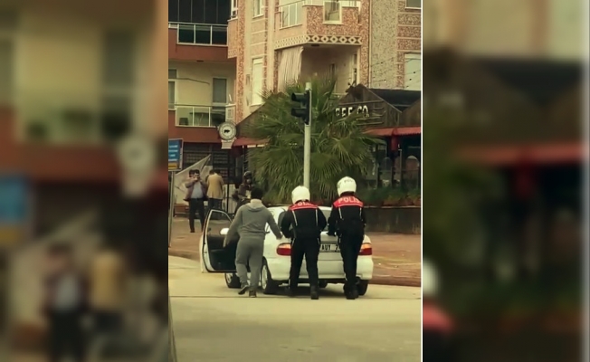 Antalya'da cadde ortasında stop eden otomobilini iterek yolun kenarına çekmeye çalışan sürücünün imdadına iki yunus polisi yetişti.