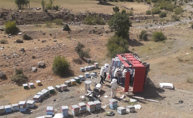 Kazada, yola saçılan arı kovanları nedeniyle arılar çevreye yayıldı. Durumun bildirilmesi üzerine Bingöl Arıcılar Birliği ekipleri, bölgeye giderek arıları topladı.
