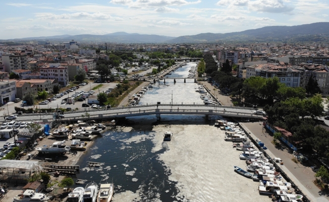 Çanakkale’de kenti ortadan ikiye bölen Sarıçay, müsilaja (deniz salyasına) teslim oldu. Balıkçı barınağı olarak da kullanılan çaydaki yapışkan tabaka üzerinde bulunan çöpler görenleri tedirgin ediyor.