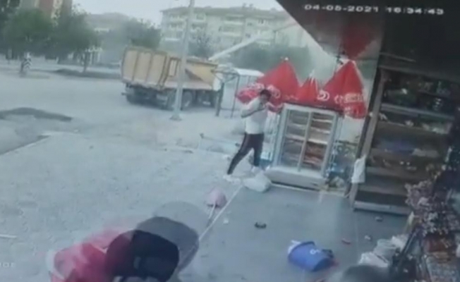 Öte yandan fırtınanın kuvveti merkeze bağlı Abdullah Paşa Mahallesi’ndeki bir büfenin güvenlik kamerasına yansıdı. 1 kişinin hafif yaralandığı olayda dondurma dolabının fırtına ile savrulması, tente kısmının yırtılması ve iş yeri sahibinin ekmek dolabını güçlükle tutması görüntülerde yer aldı.