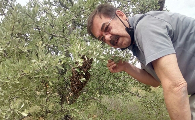 Denizli Arı Yetiştiricileri Birliği Başkanı Nihat Çomak, kovanların kaçarak oğul çıkaran ve bir ağaçta toplanan iki koloni binlerce arıyı üzerine özel kıyafet giymeden çıplak elle toplayarak tekrar kovanlarına yerleştirdi.