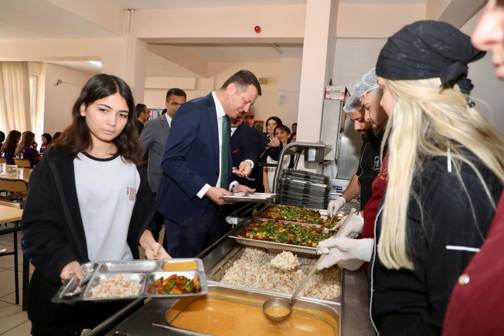 Ziyaretinde ilk olarak Okul Müdürü Serdar Uyguç ile görüşen Kaymakam Ürkmezer, okulun genel durumu, öğrenci profili ve yürütülen projeler hakkında bilgi aldı. Bilgilendirmenin ardından sınıfları ziyaret eden Ürkmezer, öğrencilerle bir araya geldi. Öğrencilerle dersleri ve çalışmaları üzerine sohbet eden Kaymakam Ürkmezer, onlara eğitim hayatlarında başarılar diledi. Daha sonra okul kütüphanesini ziyaret ederek incelemelerde bulunan ve kütüphanenin işleyişi hakkında bilgi alan Kaymakam Ürkmezer, ardından resim atölyesini de gezdi. Kaymakam Ürkmezer, ziyaret programını öğrencilerle birlikte okul yemekhanesinde öğle yemeği yiyerek tamamladı.