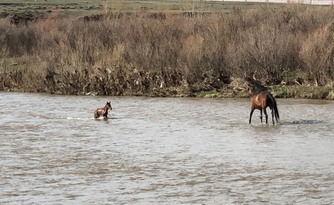 Havaların ısınmasıyla birlikte araziye çıkan yılkı atları, Kars Çayı’ndan geçerken kameralara yansıdı. Annesiyle birlikte çaydan geçmeye çalışan yavru ise akıntıya kapıldı. Anne at bir süre yavrusunun peşinden gitti. Yavru yılkı atı ise bir süre sürüklendikten sonra ayaklarının üzerinde durarak son anda akıntıya kapılmaktan kurtuldu. O anlar kamerayla kaydedildi.