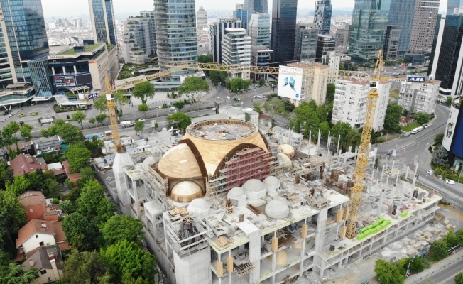 Barbaros Hayrettin Paşa Camii inşaatından gelinen son nokta havadan görüntülendi. Görüntüde, işçilerin çalıştığı görülüyor.