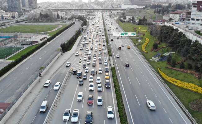 İstanbul’da ilk sahur öncesi yaşanan trafik yoğunluğu havadan görüntülendi