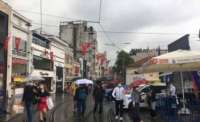 Meteoroloji Genel Müdürlüğü, İstanbul için sağanak yağmur uyarısı yapmıştı. Taksim Meydanı’nda da saat 14.30 sıralarında yağış etkili oldu. Yağış, hafta sonu sokağa çıkma kısıtlamasından muaf olan turistlerin meydanda gezmesine engel olmadı. Bazı vatandaşlar yağmurun dinmesini durakta ya da mekanların önünde beklerken bazı vatandaşlar da şemsiyesiyle meydanda gezmeye devam etti.