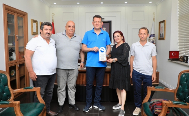 THK Alanya Şube Başkanı Keyaoğlu, yönetim kurulu üyeleri ile birlikte ziyaret ettiği Kaymakam Ürkmezer’e katkılarından dolayı teşekkür plaketi takdim etti. Keyaoğlu, yaklaşan Kurban Bayramı öncesi deri toplama faaliyetleri ile ilgili çalışmaları da görüştü.