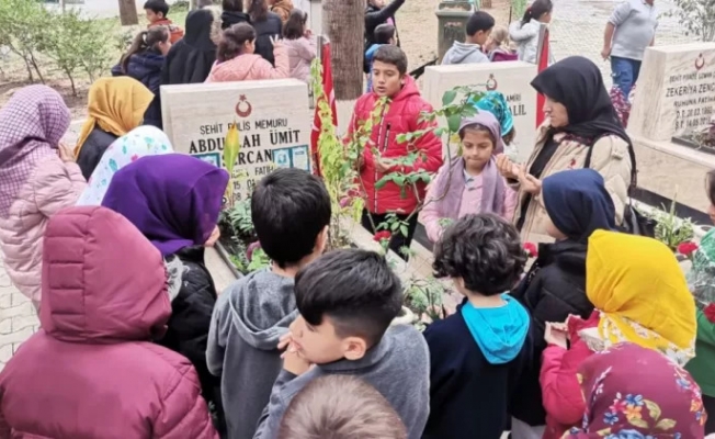 Bu kapsamında Alanya Müftülüğü Gençlik Koordinatörlüğü ve Tosmur Fatma Özmüftüoğlu İlkokulu iş birliğiyle, 4. Sınıf öğrencileri Alanya Garnizon Şehitliği’ni ziyaret etti. Ziyaret kapsamında Alanya Müftülüğü Gençlik Koordinatör Yardımcısı Süleyman Ören tarafından Kuranı Kerim tilaveti yapıldı ve akabinde şehitlerimiz için yapılan duaya âmin denildi. Ardından kısa bir konuşma yapılarak öğrencilere şehitlik hakkında bilgiler verildi. Ziyaret, öğrencilerin yanlarında getirmiş oldukları çiçekleri şehitlerimizin mezarlarına bırakmasıyla sona erdi.