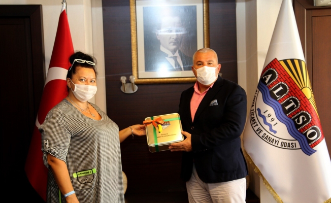 Alanya Ticaret ve Sanayi Odası (ALTSO) Başkanı Mehmet Şahin, Rusya’dan 6 gün yolculuk yaparak Alanya’ya tatile gelen Ludmila Lukyanvhuk’u ağırladı. Şahin, “Rusya’nın Komi Cumhuriyeti’nden, yılda 2 kez toplam 12 gün yolculuk yaparak Alanya’mıza gelen Alanya aşığı Ludmila Lukyanvhuk’u Odamızda ağırladık. Bir Alanya sevdalısı olan ve bugüne kadar 13 kere Alanya’mızı ziyaret eden Lukyanvhuk’a Alanya’mızın bir fahri tanıtım elçisi olarak görev yapması nedeniyle teşekkür edip, Alanya’mıza özgü muz aromasından üretilen hediyemizi takdim ettik” dedi.