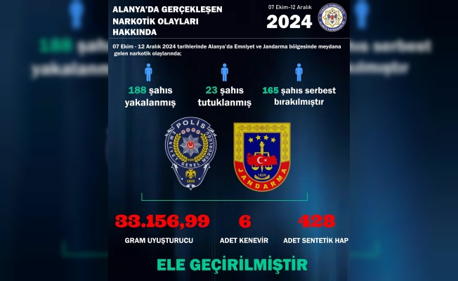 Alanya’da 07 Ekim - 12 Aralık 2024 tarihleri arasında;