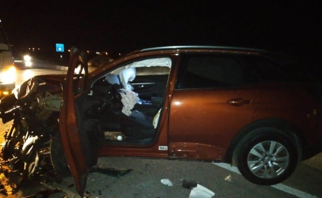 Karşı şeride geçen otomobil tıra çarptı: 1 yaralı