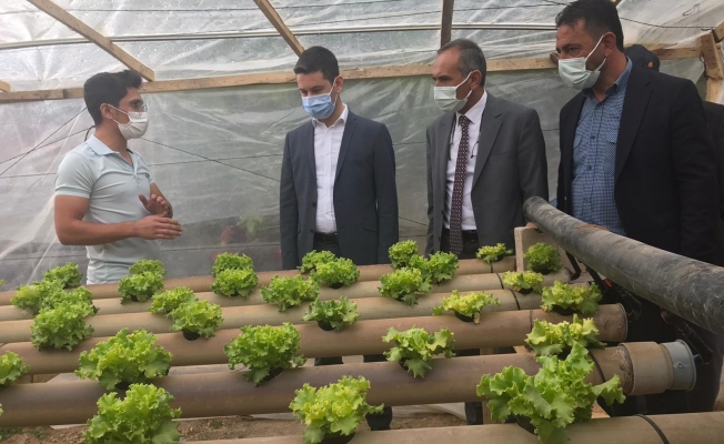 Kütahya’nın Altıntaş ilçesinde yeni üretime başlayan topraksız sera, Kaymakam Mehmet Can İrdelp tarafından ziyaret edildi.