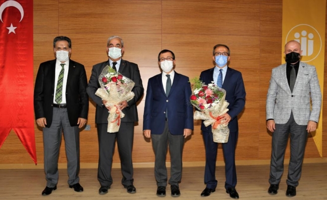 Rektör Prof. Dr. Ahmet Kızılay, Rektör Danışmanı Koyunoğlu’na plaket takdim ederek yaptığı hizmetlerden dolayı teşekkür etti. Rektör Danışmanı Koyunoğlu ve Dr. Öğr. Üyesi Necati Özbey ise birbirlerine karşılıklı çiçek takdim etti. Rektör Danışmanı Koyunoğlu, Özbey’e yeni görevinde başarılar dilerken Özbey ise Koyunoğlu’na hizmetlerinden ötürü teşekkür etti.