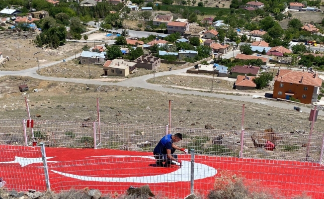 Niğde’de Kayardı Bağlarını gören Kilise Tepedeki dağda bulunan bayrak boyanarak yenilendi.